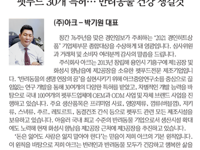 뉴스 목록 정렬 조회 날짜 “세계 10대 펫푸드 회사가 되는 것이 목표입니다” 인기 “세계 10대 펫푸드 회사가 되는 것이 목표입니다” 유한건강생활 (주)아크와 업무협약 체결 인기 유한건강생활 (주)아크와 업무협약 체결 '펫푸드' 아크, 65억 규모 시리즈A 클로징 인기 '펫푸드' 아크, 65억 규모 시리즈A 클로징 JTBC 다채로운아침 81회 '중성화 전문 케어 사료' 개발 인기 JTBC 다채로운아침 81회 '중성화 전문 케어 사료' 개발 1000만 반려동물을 위한 곡 '오래 있어줘' 발표한 조정민x아크 인기 1000만 반려동물을 위한 곡 '오래 있어줘' 발표한 조정민x아크 경인일보 "펫푸드 30개 특허···반려동물 건강 챙길 것" 인기 경인일보 "펫푸드 30개 특허···반려동물 건강 챙길 것" 300여종 OEM·ODM 펫푸드 '멍·냥 집사' 걱정 덜었다 인기 300여종 OEM·ODM 펫푸드 '멍·냥 집사' 걱정 덜었다 경기도 등, '2021년 노사상생 및 일터혁신 우수기업’에 ㈜아크 선정 인기 경기도 등, '2021년 노사상생 및 일터혁신 우수기업’에 ㈜아크 선정 경기도 산학협력 지원으로 반려동물 피부염 예방 사료 개발 성공 인기 경기도 산학협력 지원으로 반려동물 피부염 예방 사료 개발 성공 반려동물 피부염 예방 사료 개발...경기도 산학협력 지원 성과 인기 반려동물 피부염 예방 사료 개발...경기도 산학협력 지원 성과 김용서 전 수원시장·아크 이만수 자문위원장, 유기견보호소에 사료 기부 인기 김용서 전 수원시장·아크 이만수 자문위원장, 유기견보호소에 사료 기부 경인일보 국내 최고 반려동물 식품 제조기업'아크' 인기 경인일보 국내 최고 반려동물 식품 제조기업'아크' IBK기업은행 윤종원 은행장님 ㈜아크 방문 인기 IBK기업은행 윤종원 은행장님 ㈜아크 방문 ㈜아크, ㈜비앤원과 업무 제휴 체결 인기 ㈜아크, ㈜비앤원과 업무 제휴 체결 ㈜아크 전속모델 조정민 ‘첫 디너쇼’ 성공적으로 마무리 인기 ㈜아크 전속모델 조정민 ‘첫 디너쇼’ 성공적으로 마무리 열린1페이지 2페이지 검색 게시판 검색 검색 검색대상 제목내용제목+내용글쓴이글쓴이(코) 검색어 필수 검색